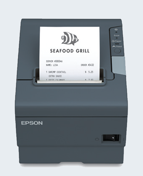 | Epson Thermal Printer Model TM-T88V The TM-T88V is the latest addition to Epson’s industry-leading TM-T88 POS printer series. Designed for use in food service and retail environments, the TM-T88V offers more speed, features and reliability than ever before. |